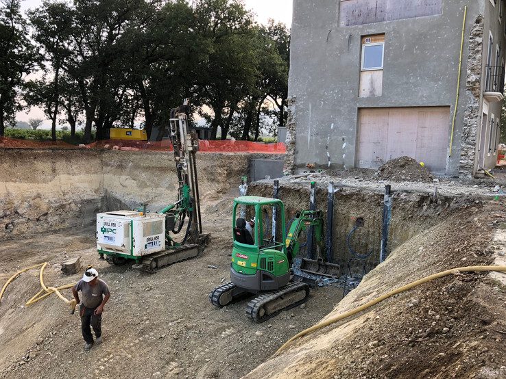 Terrassements en déblais de 5m de hauteur, en mitoyenneté directe d’un mas existant.