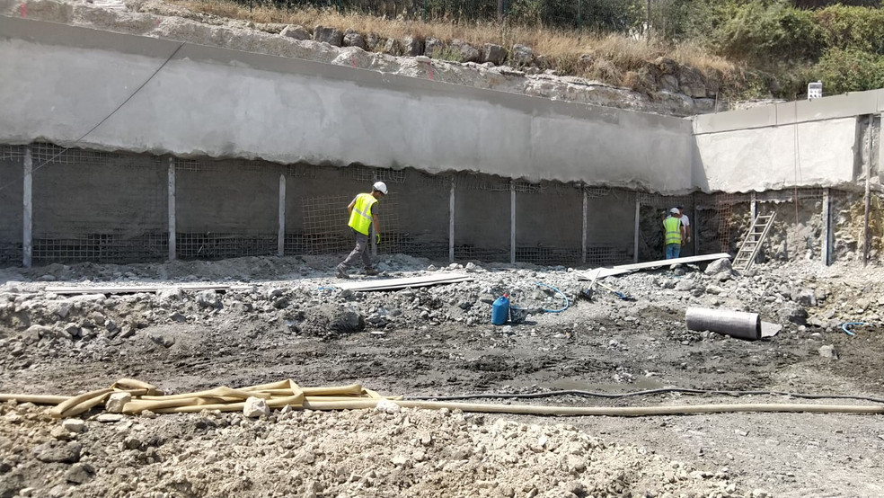 Terrassements en déblais de 6m de hauteur, en limite de propriété, pour la création d’un parking sous-terrain.